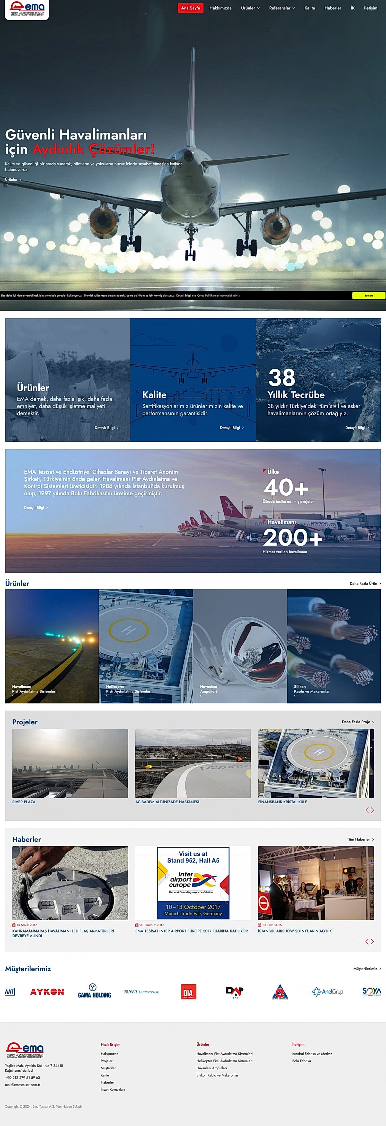 Türkiye’nin öncü Havalimanı Pist Aydınlatma ve Kontrol Sistemleri üreticilerinden EMA Tesisat için, kurumsal kimliğini yansıtan modern ve işlevsel bir web sitesi tasarladık.