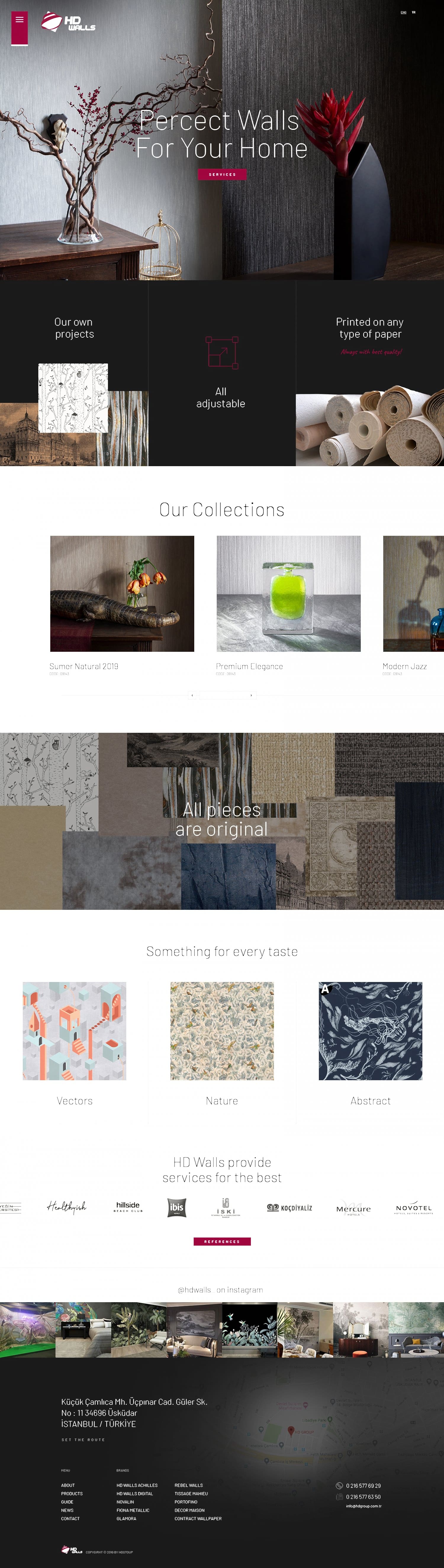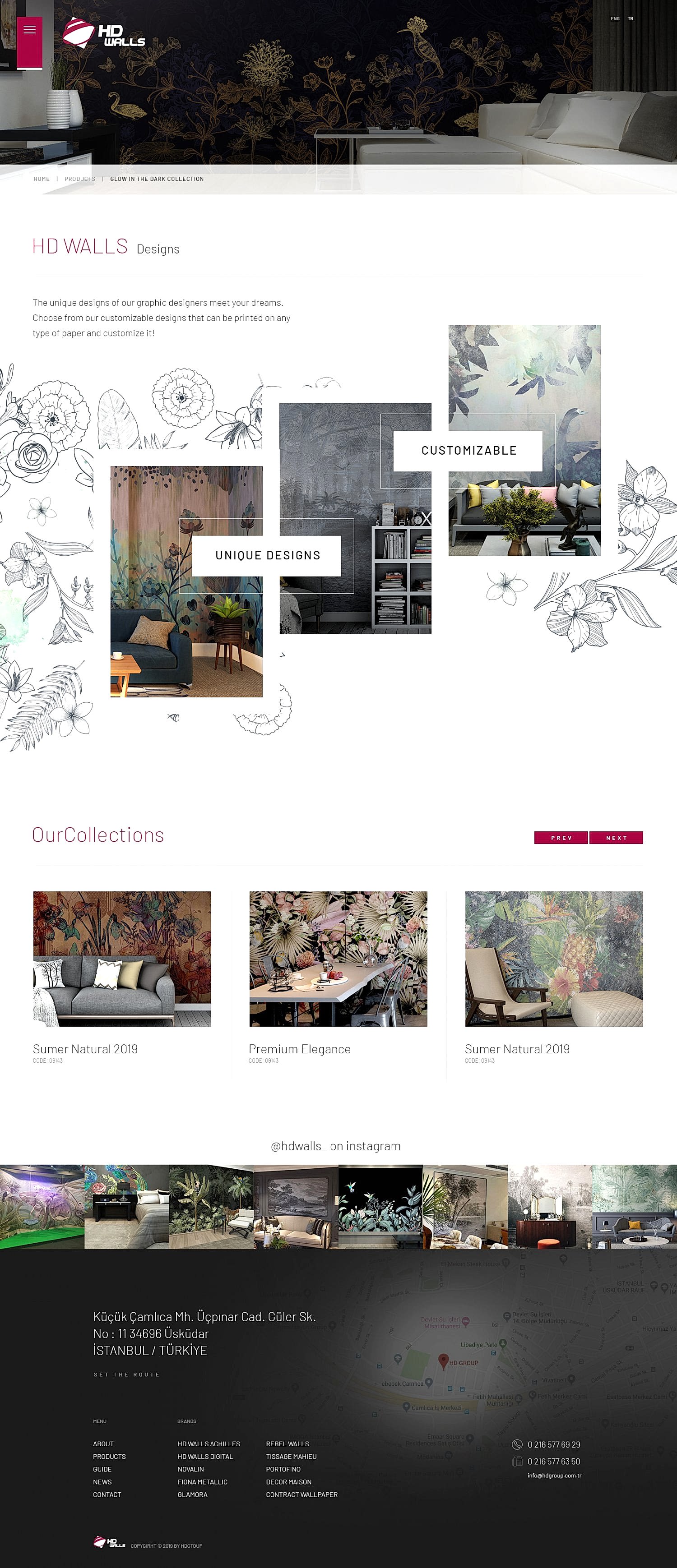 HD Walls ülkemizde oldukça farklı, başarılı ve kaliteli duvar kağıtları tasarlayan ve üreten öncü firmalar arasında yer alıyor. Marka kimliklerini bir internet sitesiyle taçlandırmak isteyen HD Walls için onları hedeflerine ulaştıracak ve müşteriyi etkileyecek bir web sitesi yapımı sürecine adım attık. İlk adımda, sayfadaki yazı miktarını azaltarak duvar kağıtlarının estetikliğini odak noktaya aldık. Böylece müşterilerin ilgisini konsept görsellerle ve bu görsellerin üstünde yer alan harekete geçirici cümlelerle çekmeyi başardık. Ardından müşterilerin kolay kullanabileceği bir panel tasarladık. Sürekli firmadan fikir alarak ve yaptıklarımızı iş birlikçilerimize bildirerek hareket ettiğimiz için HD Walls’ın severek kullandığı, oldukça pratik ve amaca uygun tekstil ve ducar kağıdı web sitesi tasarladık.