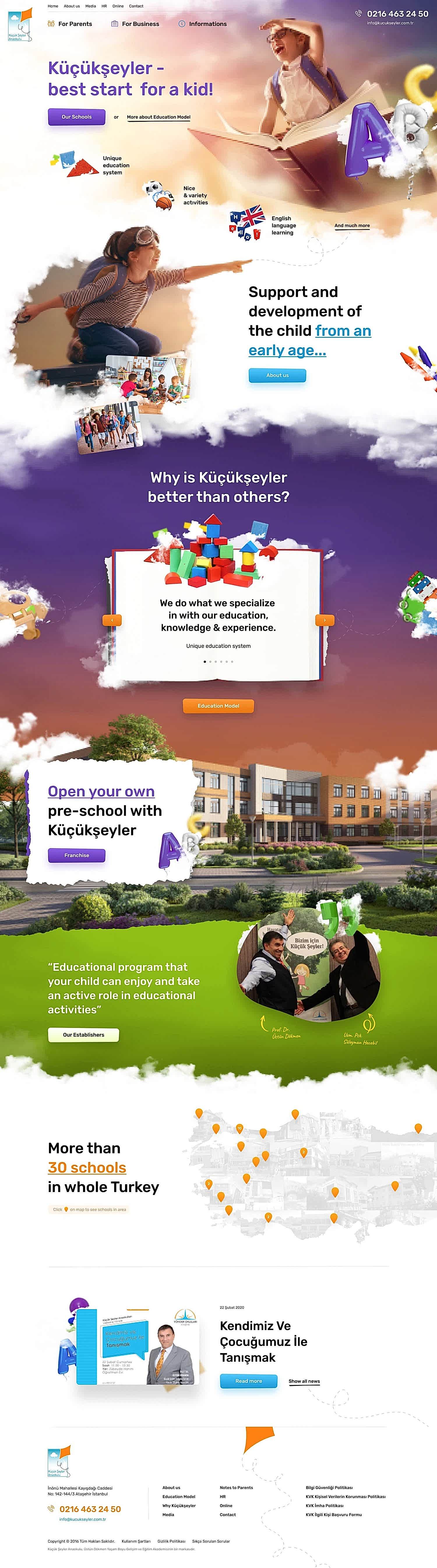 eğitim web sitesi oluşturmak için kolları sıvadık. Çağın ilerisinde ve çocukların gelişimini büyük ölçüde destekleyen eğitim programlarını verimli bir şekilde sergilemek için uygun tasarımlar geliştirdik. İlgi çekici görseller, etkileyici tanıtımlar ve okulun başarılarını sergileyen verilerle sitenin dört bir yanını ilmek ilmek işledik. Ortaya ise Küçük Şeyler Anaokulları’nın adına yakışacak, web tasarım ajansımıza yakışır donanımlı bir eğitim